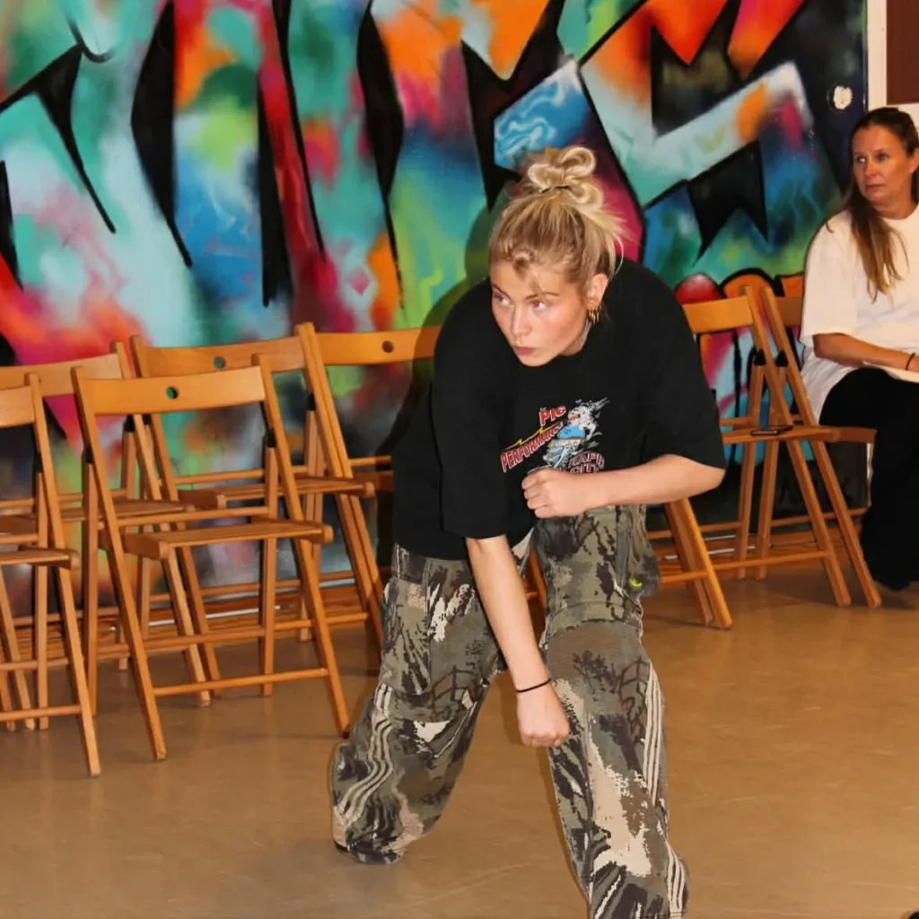 Hiphop är en uttrycksfull och rytmisk dansstil med mycket energi och ”grooves”. Musiken har starka rytmer och beats. Dansstilen kombinerar rytm, improvisation, personlighet, kultur, gemenskap och kreativitet. Hiphopen uppstod på 1970-talet på New Yorks gator och har influenser från Breakdance, Popping och Locking.