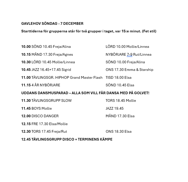 Vår stora avslutning för alla våra grupper är på Gavlehov 6-7/12